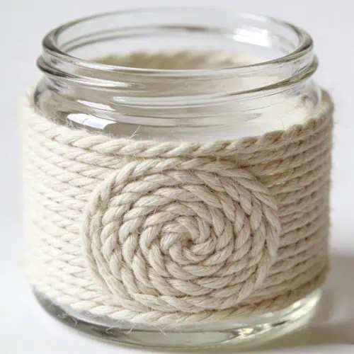 Rustic ChicJute Twine, Hot Glue GunWrap twine tightly from bottom to top; secure ends with glue.